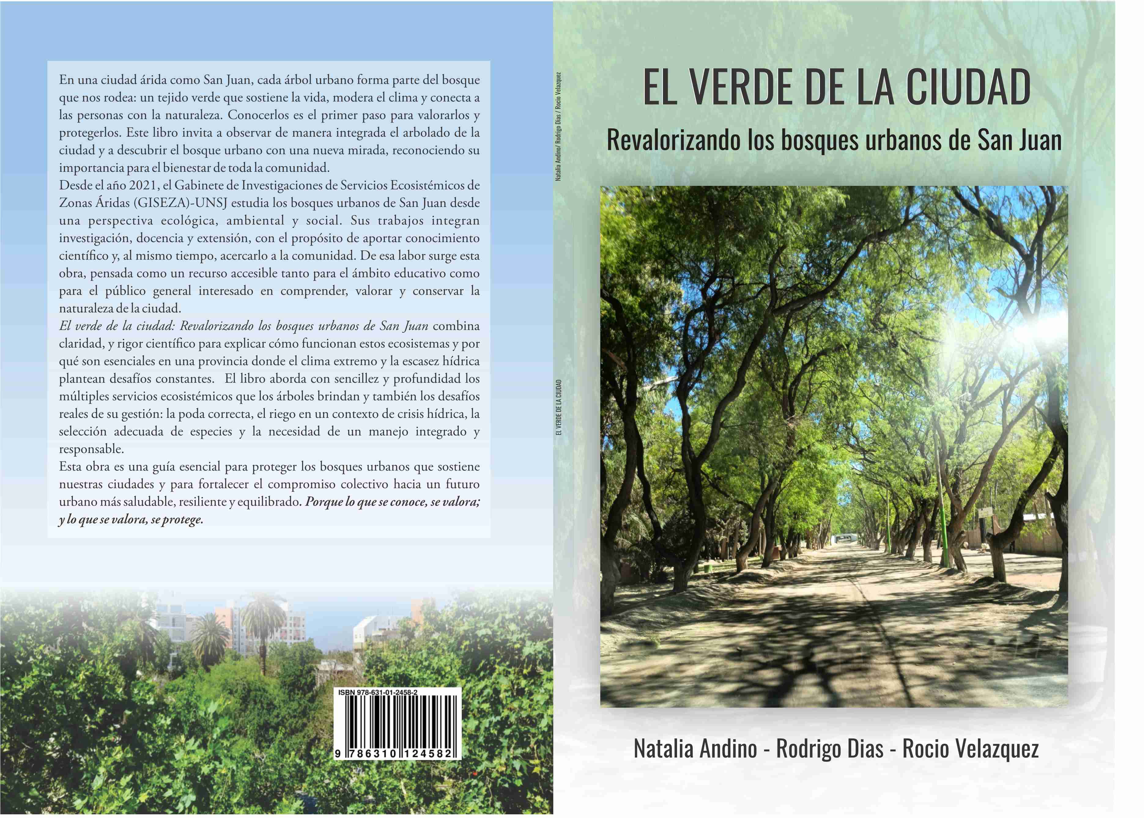 En el Instituto Regional de Planeamiento y Hábitat (IRPHa), el Grupo de Investigaciones de Servicios Ecosistémicos de Zonas Áridas (GISEZA) desarrolla investigaciones orientadas a comprender el rol de los bosques urbanos en el Área Metropolitana de San Juan. El equipo, coordinado por la Dra. Natalia Andino, investigadora adjunta de CONICET, lleva adelante sus actividades abordando el estudio de los bosques urbanos desde una perspectiva ecológica, ambiental y social. Entre los principales avances del grupo se destacan: • Evaluaciones de la capacidad de los bosques para mejorar la calidad del aire a través de la retención de material particulado. • Análisis de la estructura y composición vegetal de los bosques urbanos • Estudios sobre la relación entre biodiversidad y condiciones ambientales • Los bosques urbanos como corredores verdes de zonas áridas • Uso de herramientas digitales para el conocimiento y valoración de los bosques urbanos Estos resultados permiten generar información clave para la planificación urbana y la toma de decisiones en políticas ambientales. Un aspecto distintivo del trabajo de GISEZA es la incorporación de la ciencia ciudadana, que promueve la participación activa de la comunidad en el conocimiento y la conservación de la biodiversidad asociada a los bosques urbanos. A través de iniciativas de monitoreo participativo, que incluyen actividades en diversas escuelas de San Juan y el uso de aplicaciones de ciencia ciudadana, se registran las especies de aves y plantas leñosas presentes en distintos tipos de bosques urbanos. Esta perspectiva fortalece el vínculo entre ciencia y sociedad, en línea con el espíritu del Día Internacional de los Bosques: conocer para conservar. Como parte de sus acciones de divulgación, el equipo ha publicado el libro “El verde de la ciudad. Revalorizando los bosques urbanos de la ciudad”, una obra que reúne conocimientos científicos, experiencias territoriales y propuestas educativas para acercar el concepto de bosque urbano a la comunidad.